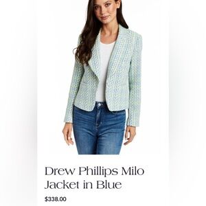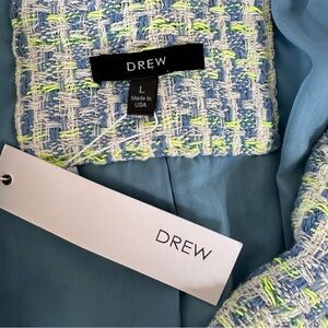 Drew Milo tweed single button blazer in blue combo NWT size Large
