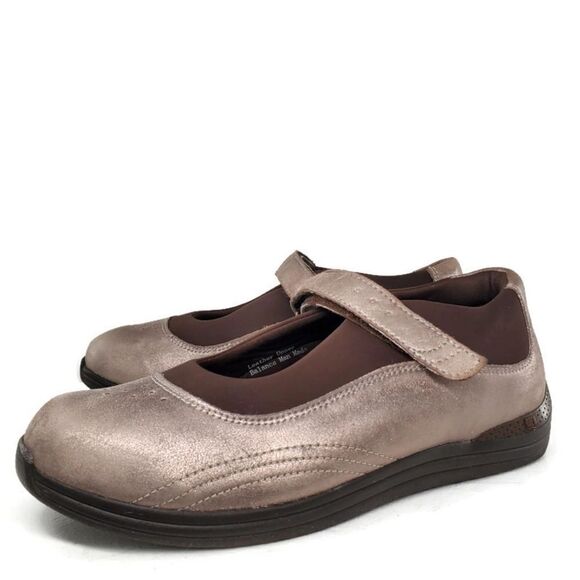 Drew Rose Dusty Pewter Silver Leather Slip-On Orthopedic Comfort Mary Jane Shoes