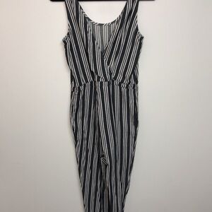 Drew Striped Jogger Jumpsuit Sleeveless Charcoal Grey Small