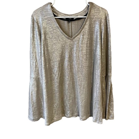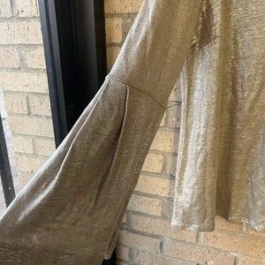 Drew Women's Size L Metallic Gold 100 Linen Belle Blouse Long Sleeve Hippie Y2K
