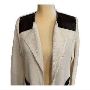 Drew by Anthropologie Cream Open Front Leather Trim Cardigan Jacket Size M
