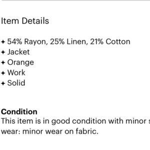 NWOT, unlined blazer in a size S and the color is orange with specks of white.