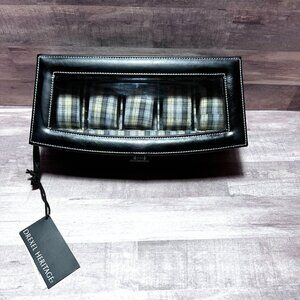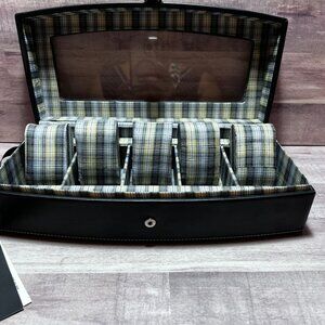 Drexel Heritage Mens Plaid Black Leatherette 5 Slot Watch Jewelry Organizer Box