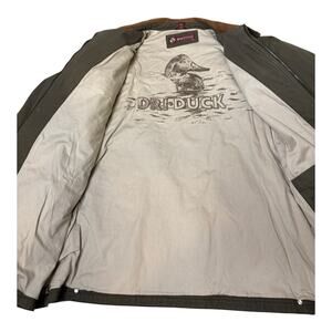 This Dri-Duck Jacket is made for the outdoorsman who needs a durable and stylish jacket for workwear, casual wear, and outdoor activities. The heavy canvas jacket features a leather collar, zippers, pockets, and an inside graphic for added accents. The solid green color and barn jacket style make it a fashionable choice for any occasion. The jacket is designed with sizing for a comfortable fit. The zip closure ensures a secure fit while the collared design gives it a classic look. Whether you're working outdoors or enjoying a weekend hike, this Dri-Duck Jacket is the perfect choice for any adventure.
