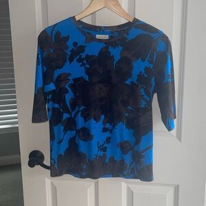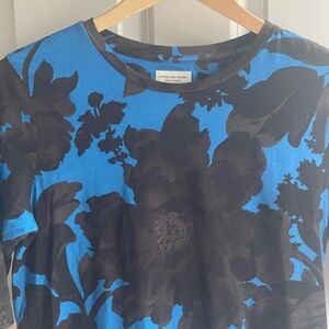 Dries Van Noten Black & Blue Floral 100% Cotton Short Sleeve Tee Extra Small