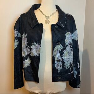 Dries Van Noten Black Floral Silk Blazer, size 40; design: lt blue,purple, gold