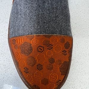 This style is eccentric as is the Belgium designer. His work is characterized by use of prints, colors, original fabrics and layering. You see all of that design in these shoes. The gray portion is stretchy for ease of slip on. They are in excellent condition having not been worn. They can be easily pared for casual or for dress occasions that will be stunning and comfortable. Dries Van Noten was a charter member of the collective of Belgian designers that disrupted the fashion culture with their avant-garde aesthetics and stylistic daring in the mid-1980s. All alumni of Antwerp's Royal Academy of Fine Arts, they became known as the Antwerp Six. The style is still very contemporary and relevant today.