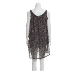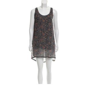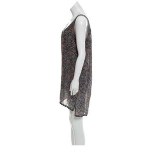 Grey and multicolor Dries Van Noten silk-blend dress with scoop neck and floral print throughout. Women's size medium. In good used condition with some signs of wear. There is some pilling at interior lining. Some discoloration/tiny hole at brand tag (tag only- not garment fabric.) Exterior silk is in great condition.