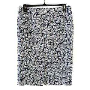 Dries Van Noten Skirt Size 44 Blue White Paisley Brocade Silk Blend Pencil