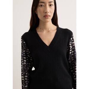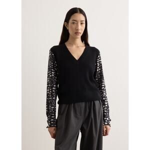 Dries Van Noten Tomina Silk Sleeve V Neck Sweater in Black L