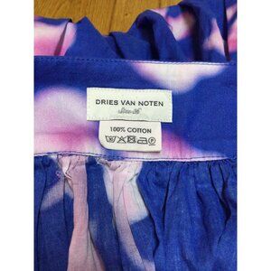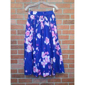 Dries Van Noten Womens Pleated A-Line Skirt Size 36 Small Blue & Pink Floral