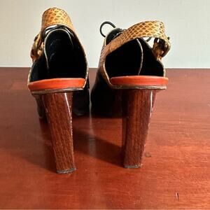 Dries Van Noten black leather snakeskin Slingback Lace up Designer Clog Italy 38