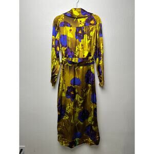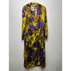 Dries Van Noten floral satin trench coat yellow women US 8 double-breasted