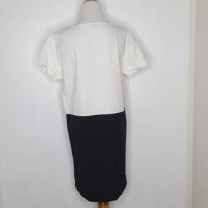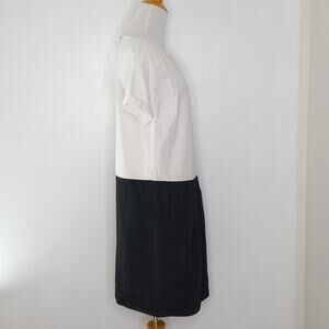 Dries van Noten Minimalist Dress Colorblock Shift White Black Pockets Women 36