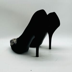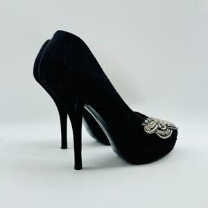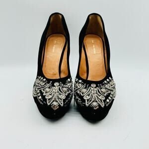 Dries van Noten Shoes Womens 6.5 Black Suede Heels Silver Beaded Chain Stilettos