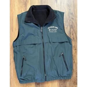 1-Drift Creek Outdoors Men's Med Green Full Zip Fleece Lined Reversible Vest Logo: The Cedars Lodge- Ketchikan, Alaska