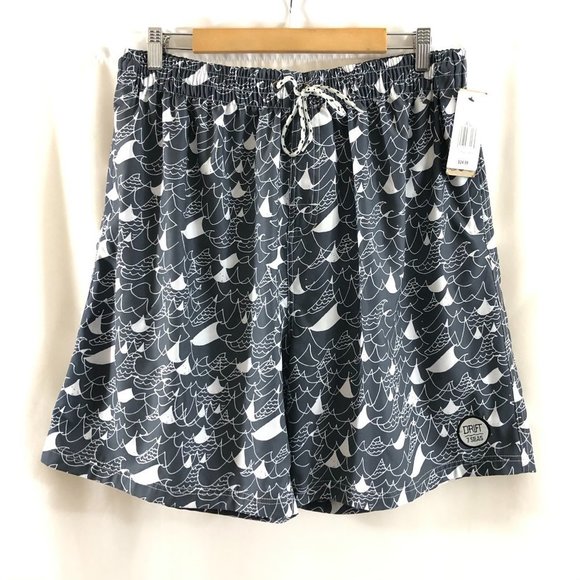 Drift Mens Swim Trunks Wave Print Elastic Waist Mesh Lined Drawstring Gray XL