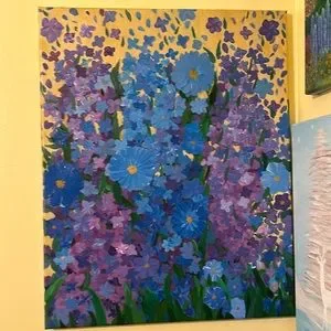 Introducing the stunning 'Drifting Spring' - a captivating piece of art that is sure to add a touch of elegance to any space. This 24 x 18 acrylic painting on stretched canvas boasts an abstract style floral design that is simply mesmerizing.