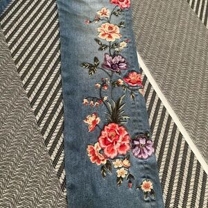 At some point, I had to give in to the fact that these jeans are a size too small for me and I need to either frame them and use them as art or let them go--I chose the latter. So grab these fast--an absolutely beautiful pair of Driftwood "Aubrey" jeans in like-new condition. The jeans are wonderfully embroidered with colorful flowers on the lower left leg and the right upper waist area. The medium lightweight denim is so comfortable to wear and the embroidery adds a fun boho touch!