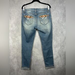 Driftwood Chevron Embroidered Jackie Skinny Raw Hem Ankle Length Jeans W28XL27