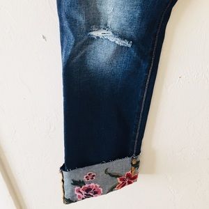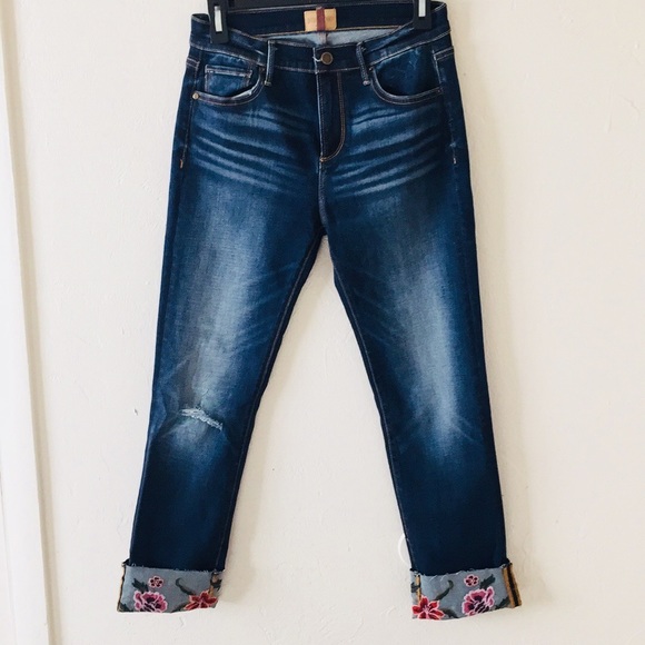 Driftwood Colette Embroidered-Cuff Cropped Jeans