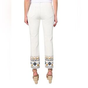 Driftwood Colette off- white ankle jean with embroidered leg and raw hem.