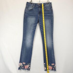 Driftwood Colette Jeans Women 27 Blue Embroidered Floral Frayed Hem Stretch Denim Pants