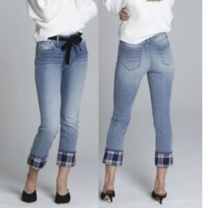 Driftwood Colette Skinny Plaid Cuff Crop Jeans