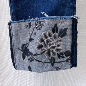 Driftwood Crop Jeans Colette (Scorpio), size 26, dark wash, floral embroidery