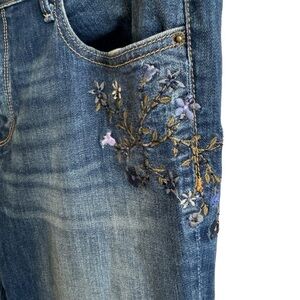 Gorgeous floral embroidered boho raw hem jeans from Driftwood! Size 31 and in great preowned condition; no visible flaws. Floral embroidery along the sides and bottoms.
