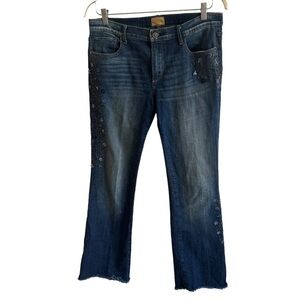 Driftwood Eva Raw Hem Floral Embroidery Jeans, Size 31