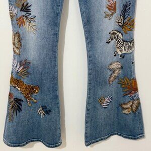 Driftwood Farrah Embroidered Flare Jeans Zebra Leopard Jungle Boho 27 NWT