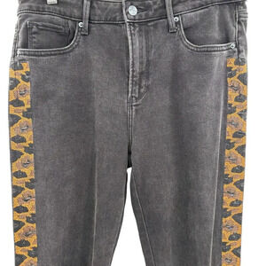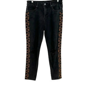 Driftwood Gizelle Skinny Fit Ankle Jeans with Cheetah Stripe Black Size 28
