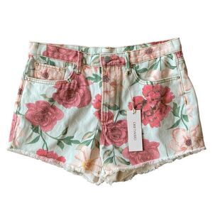 Driftwood Goldie 100% Cotton Floral Print Mid Rise Fray Hem Shorts NWT Size 30