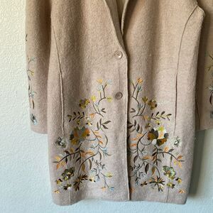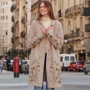 Driftwood Innsbruck Embroidered Coat Beige Wool Blend Size SMALL