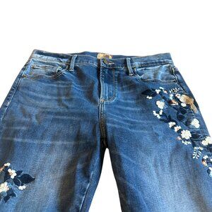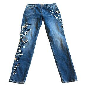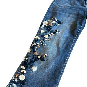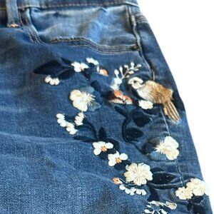 Driftwood Jackie Denim Skinny Jeans Pants Embroidered Bird Floral Size 30 Womens