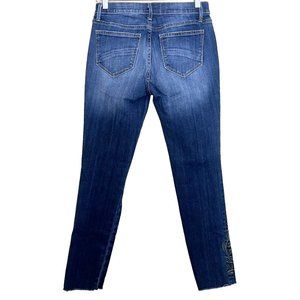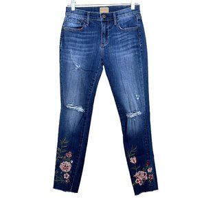 Driftwood Jackie Distressed Floral Embroidered Jeans 26 Boho Cottagecore Stretch
