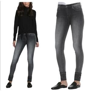 Driftwood Sundance ankle skinny jeans in washed black dark gray with embroidery. Faded Black Jackie