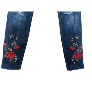 Driftwood Jackie Floral Embroidered Jeans 28 Blue Skinny High Rise Stretch Boho