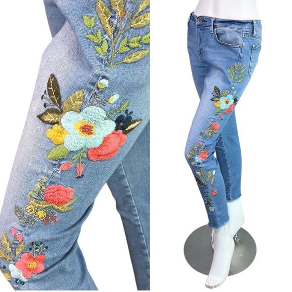 Driftwood Jackie Floral Embroidered Mid-rise Skinny Jeans Blue Denim Size 29