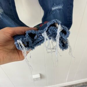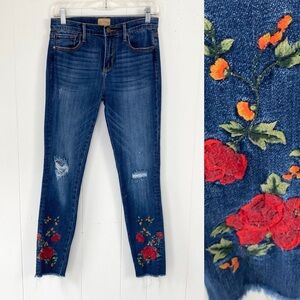 Driftwood Jackie Rose Floral Embroidered Skinny Jeans Raw Hem Stretch Size 26