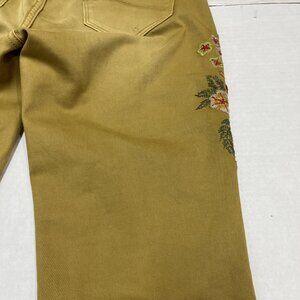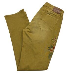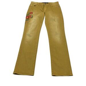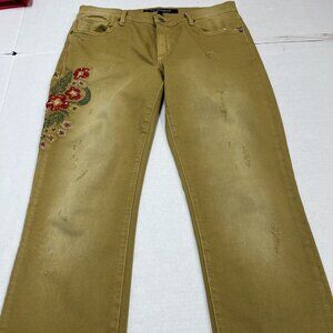 Driftwood Jeans 30 Audrey Yellow Floral Embroidered Distressed Hippie Festival