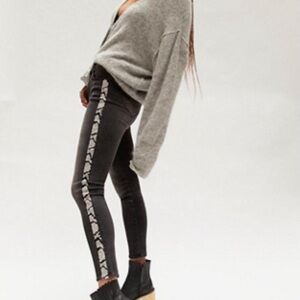 DRIFTWOOD Free People Jackie High Rise Snakeskin Embroidered Stripe Jeans Sz 27