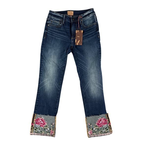 Driftwood Jeans Womens 26 Colette Embroidered Crop Straight Portofino Raw Edge