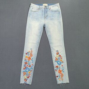 Driftwood Jeans Women's 26x28 Blue Jackie High Rise Floral Embroidered Denim