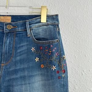 Driftwood Kelly Bootcut Jeans Size 30 Blue Floral Embroidered Boho Mid Rise