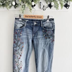 Driftwood Kelly Floral Embroidered Low Rise Jeans 26 21-3163 bootcut