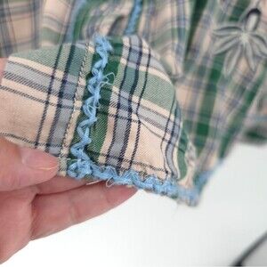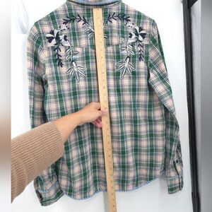 Driftwood "Lana" Pearl Snap Button Plaid Shirt Long Sleeve Embroidered Floral Green