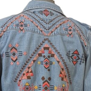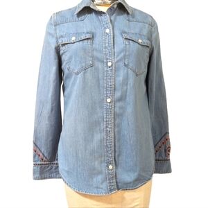 Driftwood Lana Western Embroidered Aztec Denim Button Shirt...Size Small