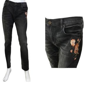 Driftwood Marilyn Black Denim Floral Embroidered Mid-Rise Skinny Jeans 31
